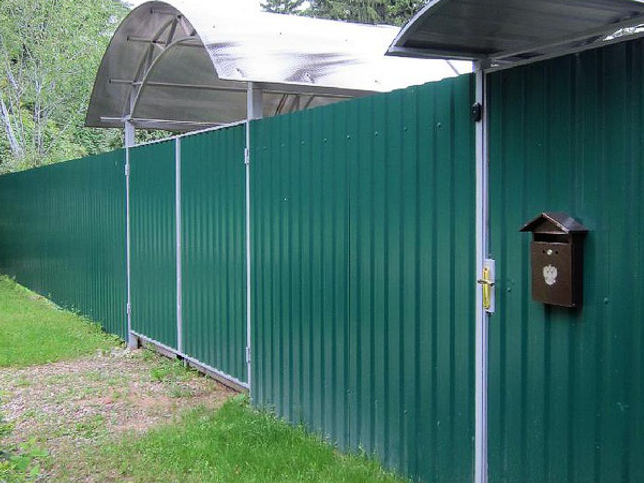 Заборы из профнастила с калиткой пример 1